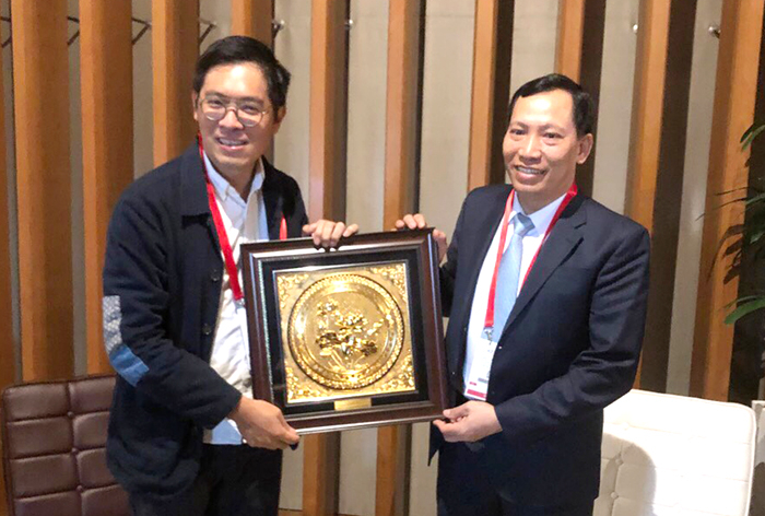 Thứ trưởng Lê Văn Tuyến tặng quà lưu niệm ngài Chng Kai Fong.