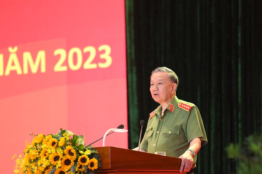 Bộ trưởng Tô Lâm khẳng định, những kết quả, thành tích của lực lượng CAND đạt được trong 6 tháng đầu năm 2023 và nửa nhiệm kỳ qua là hết sức to lớn và rất quan trọng, như đồng chí Tổng Bí thư Nguyễn Phú Trọng đã đánh giá “Lực lượng CAND đã cơ bản hoàn thành xuất sắc nhiệm vụ chính trị được giao, khẳng định được vai trò, vị trí và uy tín của mình”.