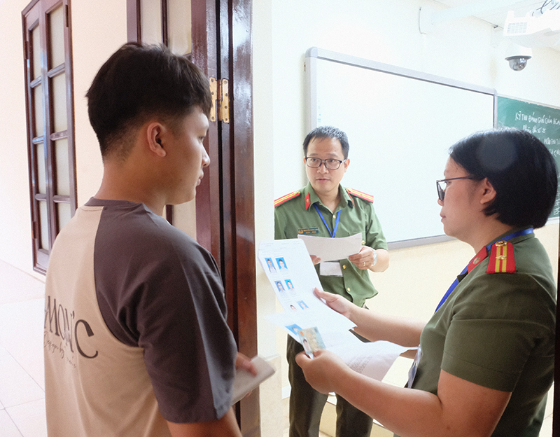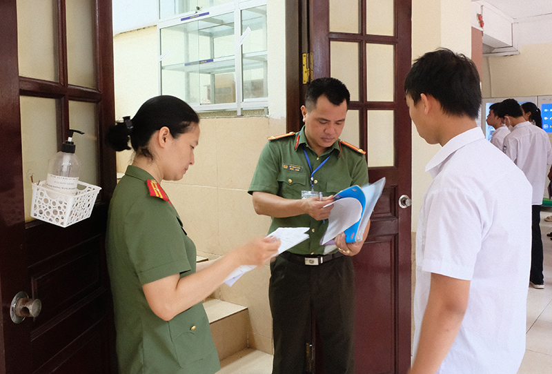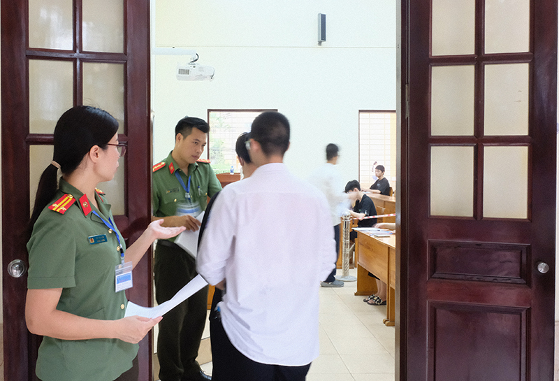 Ban Coi thi và đoàn thanh tra của Bộ Công an triển khai công tác coi thi.