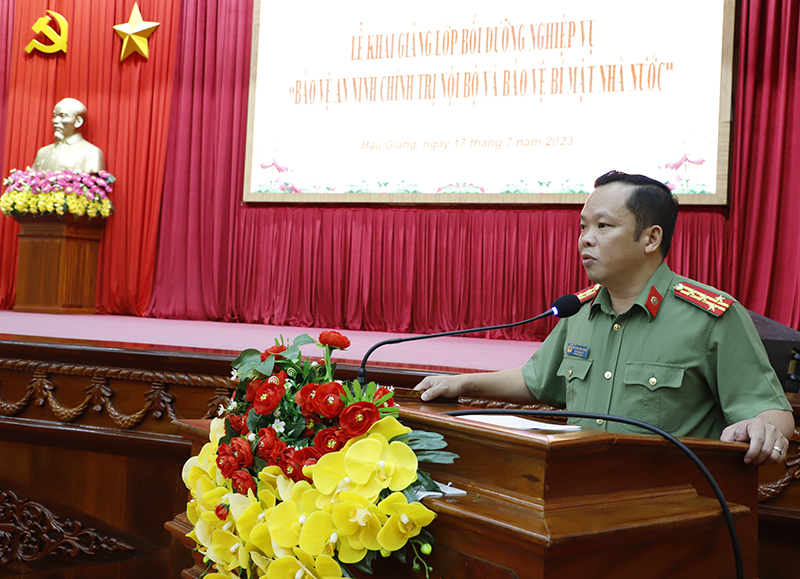 Khai giảng lớp Bồi dưỡng nghiệp vụ “Bảo vệ an ninh chính trị nội bộ và bảo vệ bí mật nhà nước” tại Công an tỉnh Hậu Giang