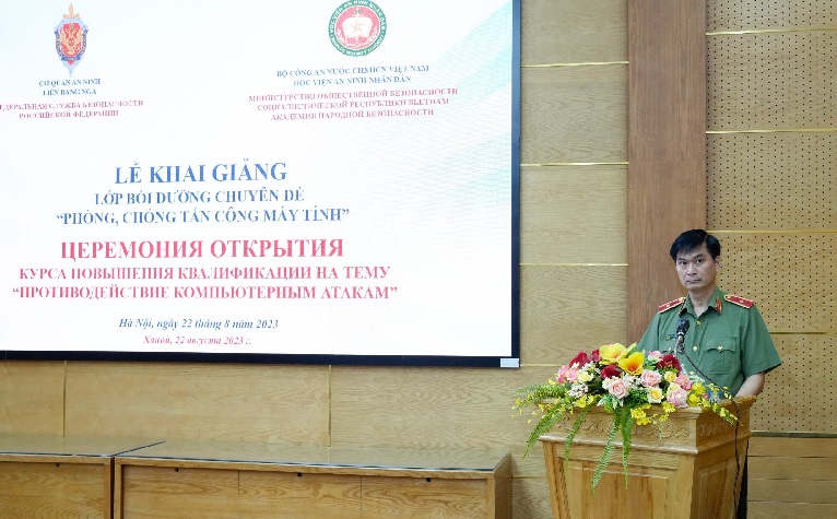 Sáng 22/8/2023, Học viện An ninh nhân dân (ANND) tổ chức Lễ Khai giảng lớp Bồi dưỡng chuyên đề “Phòng, chống tấn công máy tính” do chuyên gia Cơ quan An ninh Liên bang Nga giảng dạy.