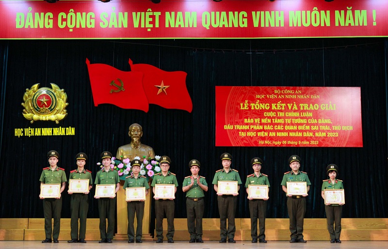 Hưởng ứng Cuộc thi chính luận về bảo vệ nền tảng tư tưởng của Đảng, đấu tranh phản bác các quan điểm sai trái, thù địch, năm 2023, ngày 06/9/2023, Học viện An ninh nhân dân (ANND) đã tổ chức Lễ tổng kết và trao giải Cuộc thi chính luận về bảo vệ nền tảng tư tưởng của Đảng, đấu tranh phản bác các quan điểm sai trái, thù địch năm 2023 tại Học viện.