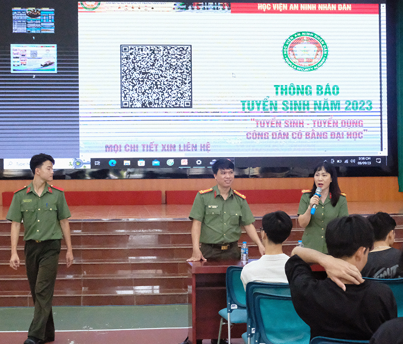 Đây là hình thức tuyển sinh mới kết hợp tuyển dụng theo chủ trương của Bộ Công an nhằm lựa chọn những công dân xuất sắc, ưu tú đã tốt nghiệp đại học trở lên, yêu thích, mong muốn được cống hiến, làm việc trong lực lượng CAND. Chương trình tư vấn tuyển sinh đã thu hút hơn 200 sinh viên thuộc trường Đại học Công nghệ thông tin và truyền thông - Đại học Thái Nguyên tới tham dự.