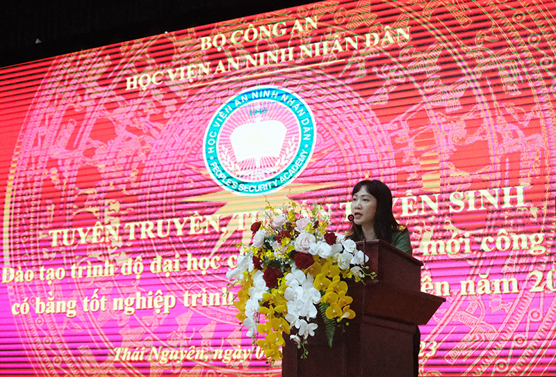 Được sự ủy quyền của Ban Giám đốc Học viện ANND, Thượng tá, TS Trần Lệ Thanh - Phó Trưởng phòng Quản lý đào tạo và Bồi dưỡng nâng cao đã giới thiệu chi tiết về kỳ thi tuyển sinh kết hợp tuyển dụng của Bộ Công an dành cho công dân có bằng tốt nghiệp đại học trở lên; thông tin về quy chế, quy định, trình tự thủ tục để sinh viên trường Đại học Công nghệ thông tin và truyền thông - Đại học Thái Nguyên nắm bắt, nghiên cứu, tham gia dự tuyển sau khi tốt nghiệp ra trường, đồng thời, giới thiệu cho người thân, bạn bè biết, tham gia dự tuyển kỳ thi năm 2023.