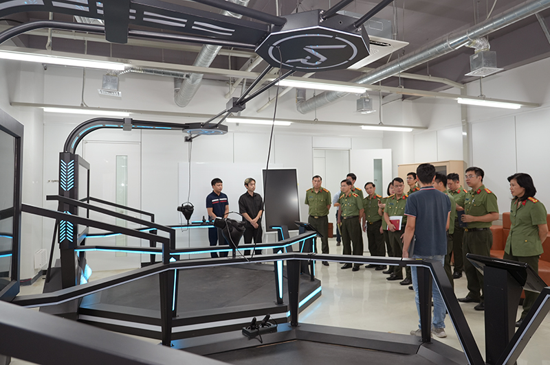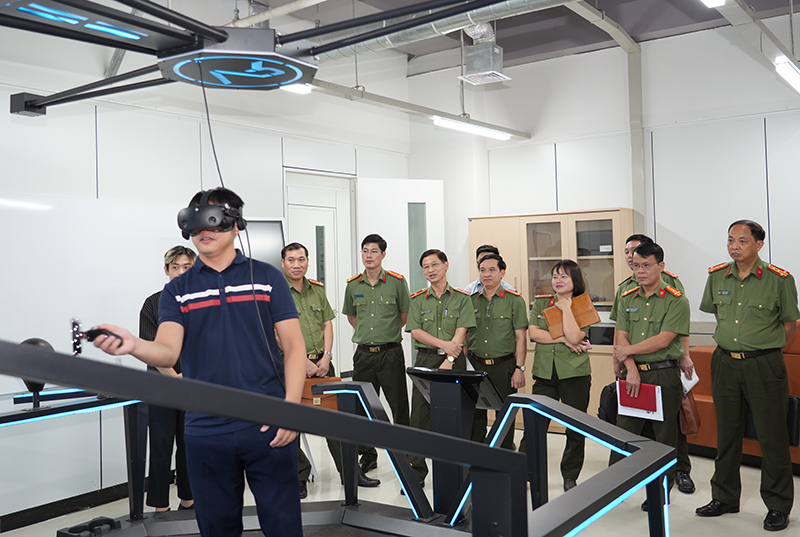Đoàn công tác tham quan, xem hướng dẫn tại Phòng thực tế ảo.