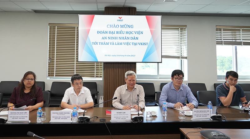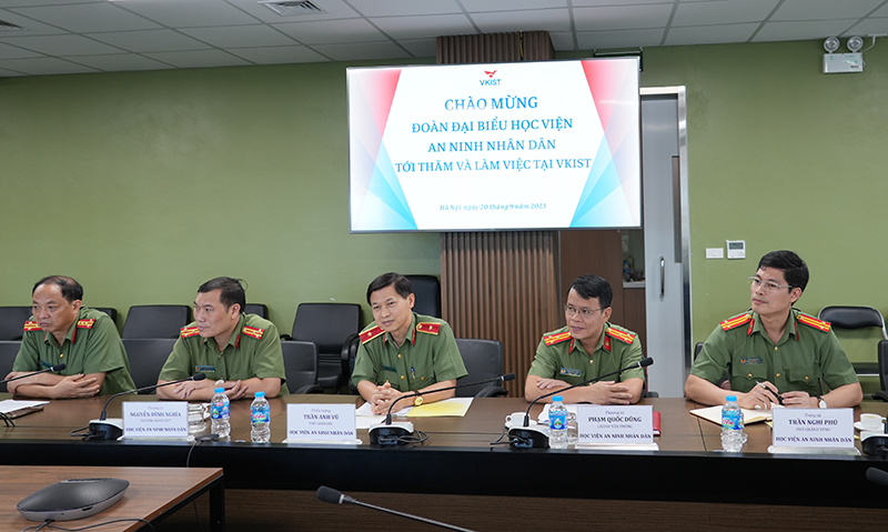 Ngày 21/9/2023, Đoàn công tác của Học viện ANND do Thiếu tướng, PGS.TS Trần Anh Vũ - Phó Giám đốc Học viện làm Trưởng đoàn đã tới tham quan và làm việc với Viện Khoa học và Công nghệ Việt Nam - Hàn Quốc, Bộ Khoa học Công nghệ (VKIST).