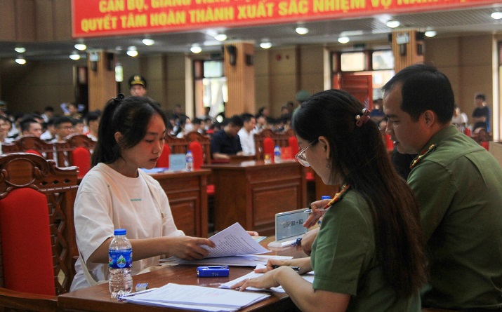 Cán bộ các phòng chức năng tham gia kiểm tra thủ tục nhập học cho học viên Khoá D55.