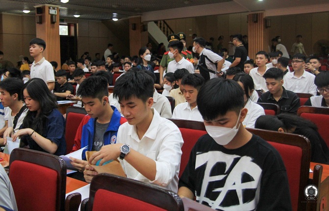 Tân học viên Khoá D55 làm thủ tục nhập học.