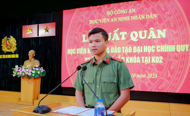 Học viên Nguyễn Xuân Khải, Lớp B5D55 - đại diện cho học viên Khóa D55 đào tạo đại học hệ chính quy trân trọng cảm ơn sự quan tâm của Đảng uỷ, Ban Giám đốc Học viện và các thầy cô giáo Phòng Quản lý học viên; đồng thời xin hứa sẽ sớm thích nghi với môi trường học tập, rèn luyện mới, nỗ lực cố gắng khắc phục khó khăn, hoàn thành tốt nhiệm vụ được giao.
