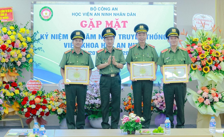 Nhân dịp này, Thiếu tướng, PGS. TS Trần Anh Vũ đã trao tặng Giấy khen của Giám đốc Học viện cho tập thể lãnh đạo, cán bộ Viện Khoa học An ninh qua các thời kỳ đã có những đóng góp tích cực vào sự nghiệp bảo vệ ANQG và phát triển của Học viện.