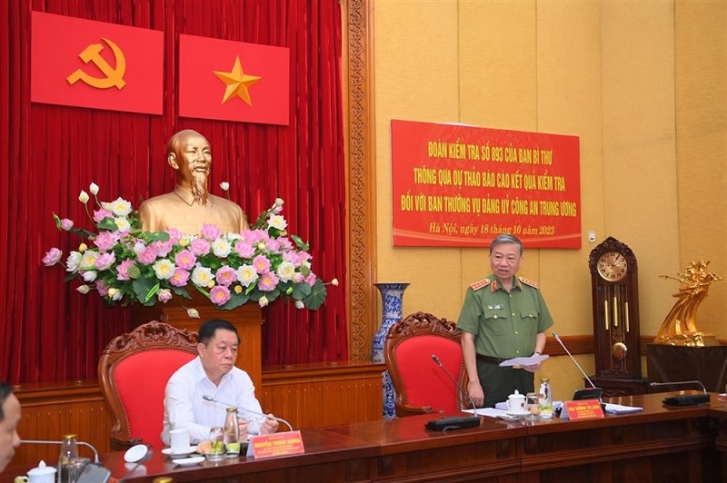 Ngày 18/10/2023, tại Hà Nội, Đoàn kiểm tra số 893 của Ban Bí thư do đồng chí Nguyễn Trọng Nghĩa, Bí thư Trung ương Đảng, Trưởng Ban Tuyên giáo Trung ương làm Trưởng đoàn đã có buổi làm việc với Ban Thường vụ Đảng ủy Công an Trung ương (CATW) để thông qua dự thảo Báo cáo kết quả kiểm tra của Đoàn đối với Ban Thường vụ Đảng ủy CATW.