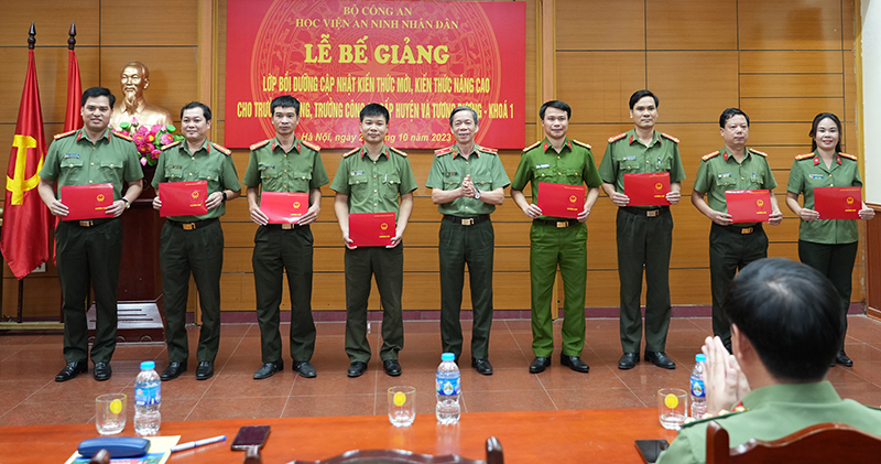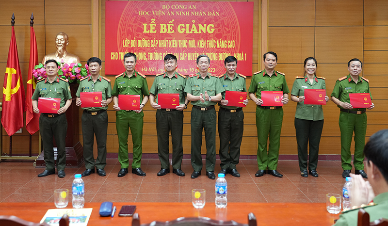 Ngày 27/10/2023, Học viện An ninh nhân dân (ANND) tổ chức Lễ Bế giảng lớp Bồi dưỡng cập nhật kiến thức mới, kiến thức nâng cao cho Trưởng phòng, Trưởng Công an cấp huyện và tương đương Khoá I - năm 2023.