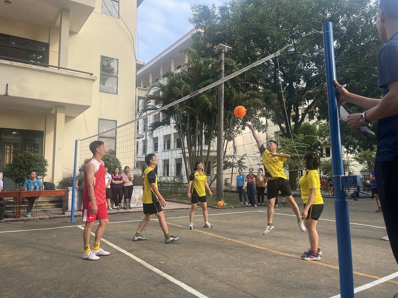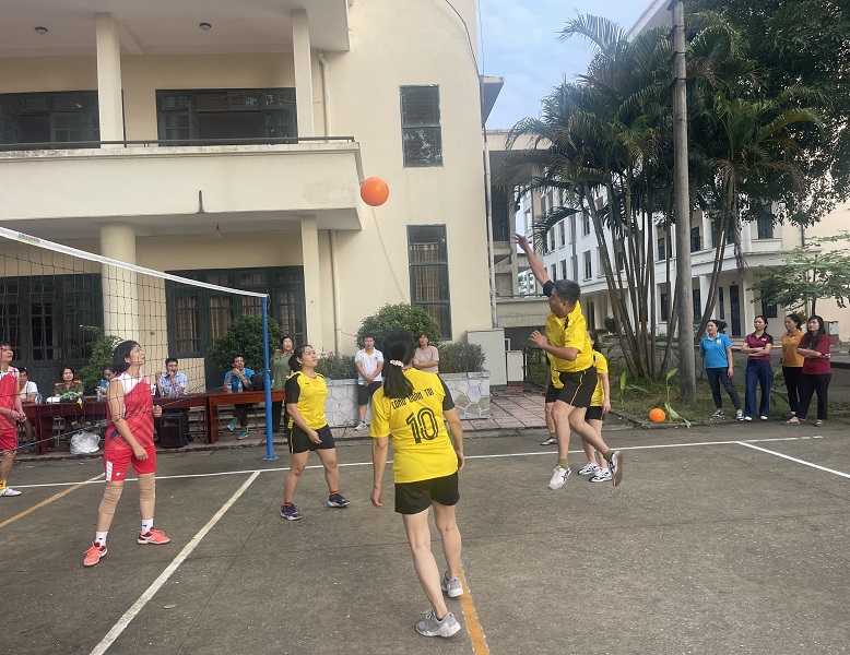 Đội tuyển Công đoàn Học viện An ninh nhân tham gia thi đấu môn Bóng chuyền hơi.