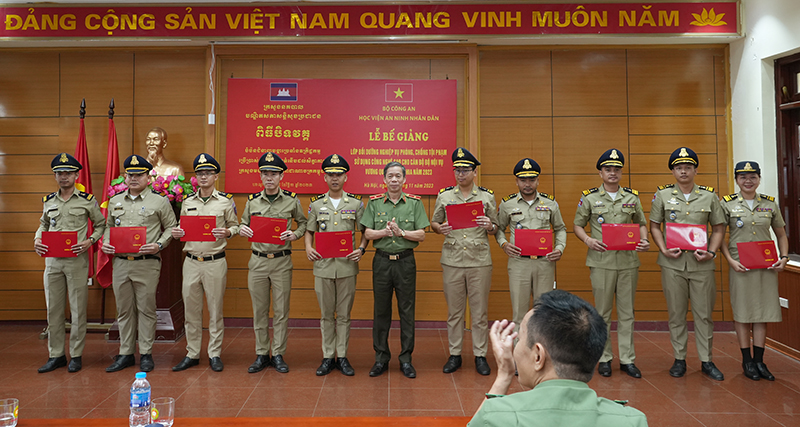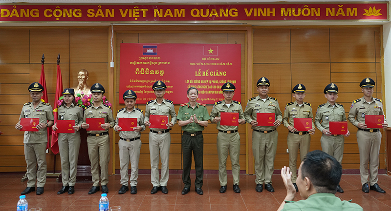 Sau 02 tháng học tập nghiêm túc và trách nhiệm cao, 20 học viên lớp bồi dưỡng là cán bộ Bộ Nội vụ Vương quốc Campuchia đã được cấp chứng chỉ hoàn thành chương trình bồi dưỡng. Trong thời gian học tập, học viên đã được nghiên cứu, lĩnh hội 12 chuyên đề và nghe các báo cáo thực tế liên quan đến công tác phòng, chống tội phạm sử dụng công nghệ cao. Đây là những vấn đề nghiệp vụ chuyên sâu được Bộ Công an Việt Nam tổng kết từ thực tiễn, tham khảo kinh nghiệm quý báu của một số nước trên thế giới và xây dựng thành lý luận. Trong chương trình học tập, học viên đã được trao đổi kinh nghiệm thực tế tại Công an tỉnh Lào Cai, vào Lăng viếng Chủ tịch Hồ Chí Minh và tham quan Khu di tích Phủ Chủ tịch.