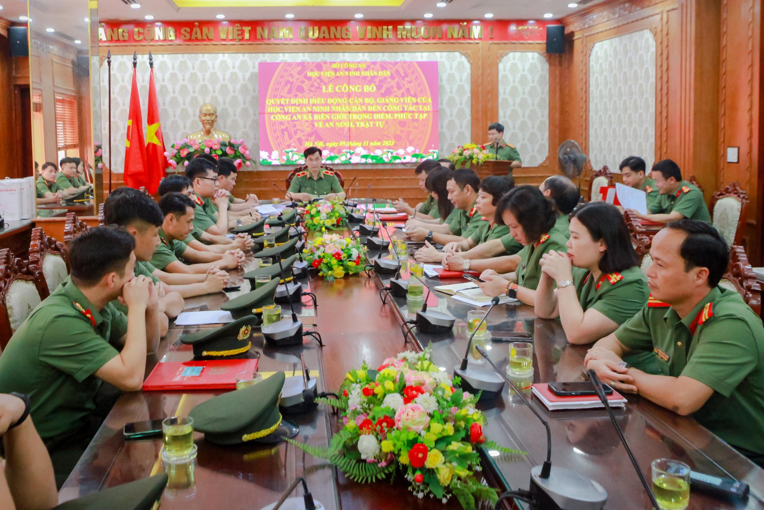 Ngày 09/11/2023, tại Hà Nội, thực hiện chủ trương của Ban Thường vụ Đảng ủy Công an Trung ương, kế hoạch của Bộ Công an về việc điều động cán bộ đang công tác tại các đơn vị trực thuộc Bộ về công tác tại Công an xã biên giới trọng điểm, phức tạp về an ninh, trật tự, Học viện An ninh nhân dân (ANND) đã tổ chức Lễ công bố quyết định điều động cán bộ, giảng viên tăng cường về công tác tại Công an xã biên giới. Thiếu tướng, PGS.TS Trịnh Ngọc Quyên - Bí thư Đảng ủy, Giám đốc Học viện chủ trì buổi Lễ.