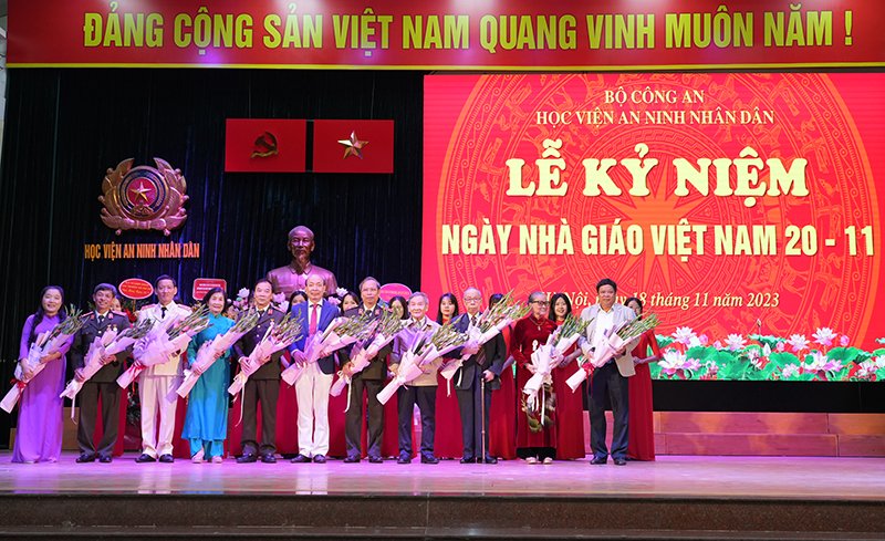 Sáng ngày 18/11/23, Học viện An ninh nhân dân (ANND) long trọng tổ chức Lễ kỷ niệm 41 năm Ngày Nhà giáo Việt Nam (20/11/1982 - 20/11/2023). Đây là dịp có ý nghĩa đặc biệt để bày tỏ lòng kính trọng, tôn vinh và tri ân sâu sắc các thế hệ nhà giáo, cán bộ quản lý giáo dục, cán bộ tham mưu phục vụ công tác giáo dục của Học viện, những người đã và đang cống hiến sức lực, trí tuệ cho sự nghiệp “trồng người” của ngành Công an và hơn 75 năm xây dựng, phát triển của Học viện ANND.