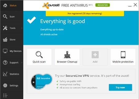 Phần mềm diệt virus miễn phí Avast! Free Antivirus 2014 vẫn chưa close beta (chưa đóng bản thử nghiệm), tương thích với Windows XP, Windows Vista, Windows 7 và Windows 8. Dung lượng 71 MB.