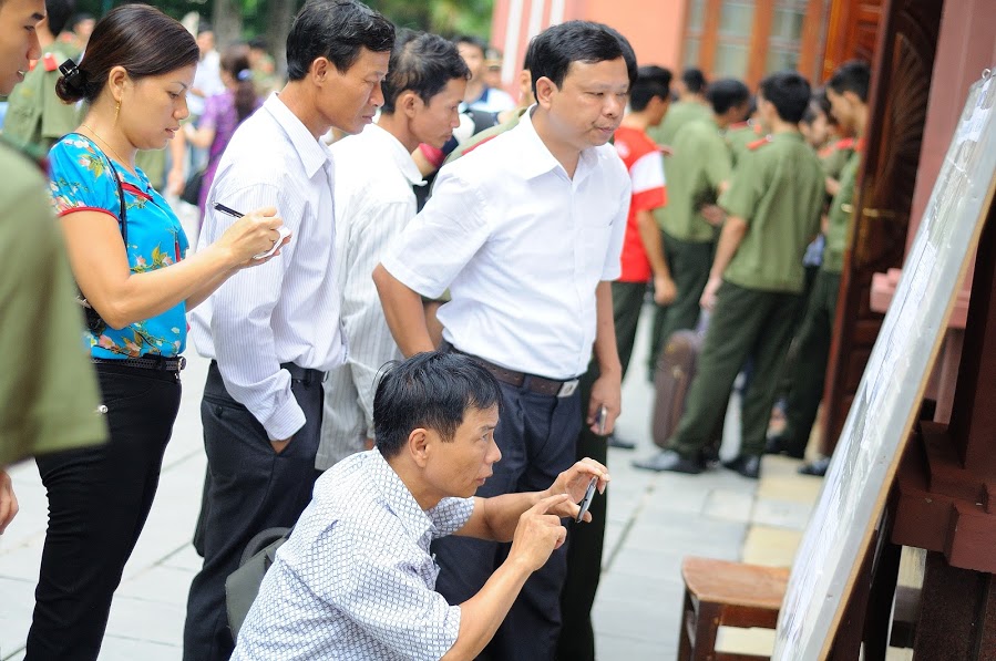 Phụ huynh đang tra cứu thông tin tân sinh viên.