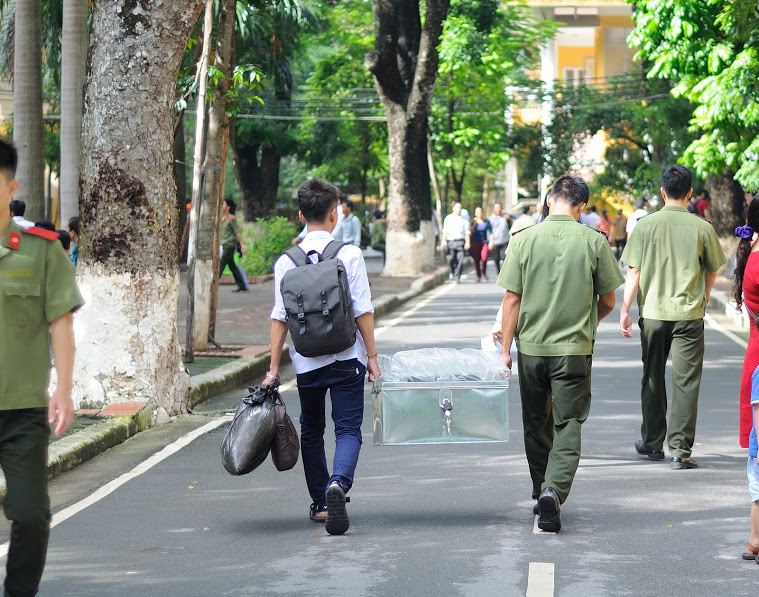Các anh chị khóa trước hỗ trợ chuyển đồ cho tân sinh viên.