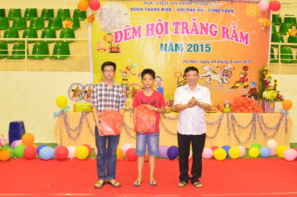 Tối 24/9/2015, tại Nhà Thi đấu Học viện ANND, hàng trăm em thiếu nhi con cán bộ, giáo viên, công nhân viên Học viện sôi nổi trong chương trình “Đêm hội trăng Rằm” năm 2015 do Công Đoàn, Hội Phụ nữ, Đoàn Thanh niên Học viện phối hợp tổ chức. Đồng chí Thiếu tướng Lê Minh Hùng – Phó Bí thư Đảng ủy, Phó Giám đốc Học viện đã đến dự và phát biểu chúc mừng các cháu nhân dịp Tết Trung thu, trao quà của Học viện cho các cháu đạt giải tại Hội thi “Tin học trẻ Bộ Công an năm 2015”. Tại đêm hội, các em thiếu nhi đã biểu diễn chương trình văn nghệ đặc sắc, hào hứng tham gia trò chơi đố vui, tặng quà, thích thú khi được xem múa lân, ảo thuật, các tiết mục văn nghệ do học viên Học viện ANND biểu diễn. Hàng trăm suất quà được gửi tặng đến tất cả các em đến dự “Đêm hội trăng Rằm” tạo không khí vui tươi, phấn khởi.
