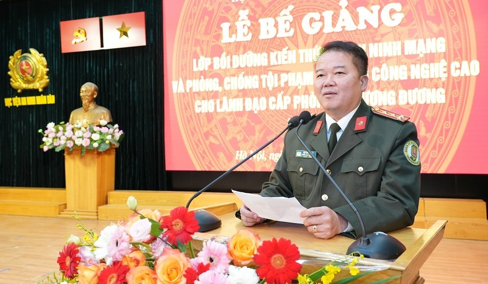 Trong diễn văn Bế giảng, Thiếu tướng, TS Trần Kim Hải - Phó Giám đốc Học viện nhấn mạnh, việc tổ chức lớp học thực sự rất cần thiết và bổ ích, đã kịp thời bổ sung, cập nhật những vấn đề cơ bản, cốt lõi về an ninh mạng và phòng, chống tội phạm sử dụng công nghệ cao cho đội ngũ lãnh đạo, chỉ huy. Sau 05 ngày học tập nghiêm túc và trách nhiệm cao, 124 học viên đã hoàn thành xuất sắc nhiệm vụ đề ra và được cấp chứng chỉ hoàn thành chương trình bồi dưỡng.