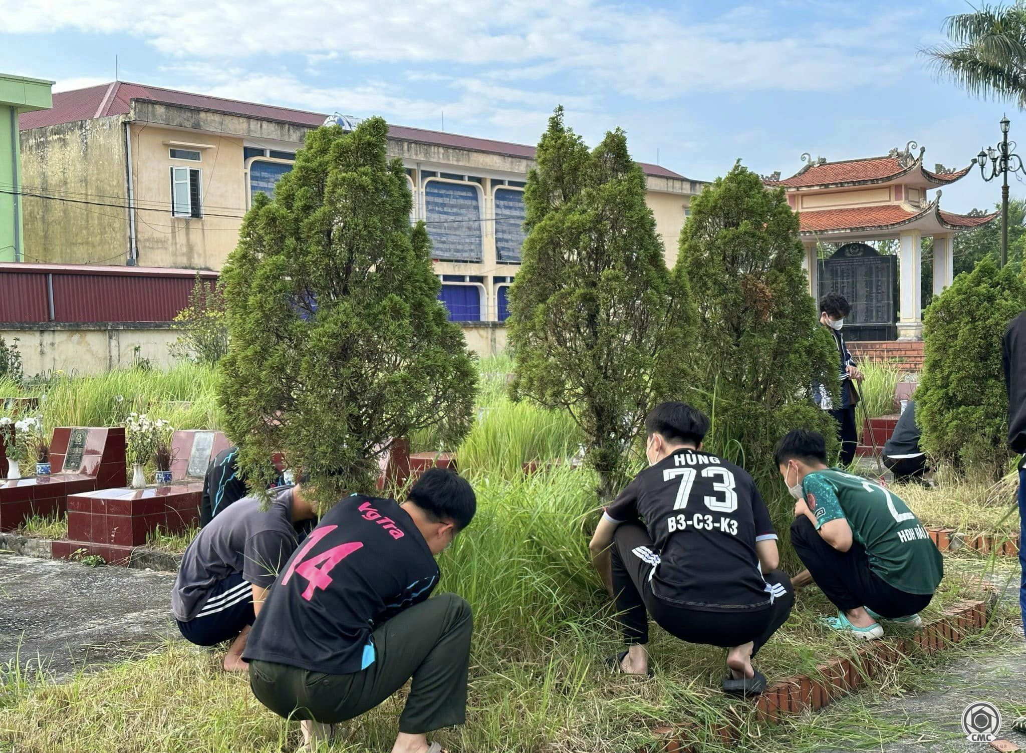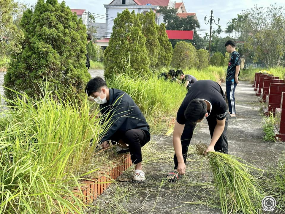 Tuổi trẻ Học viện ANND dọn dẹp, chinh trang khuôn viên nghĩa trang Liệt sỹ xã Tân Hương.