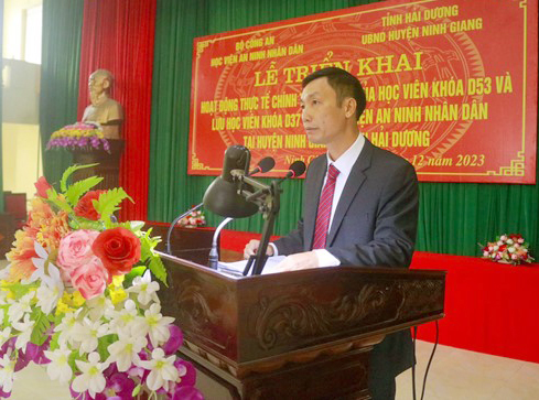 Trong buổi Lễ triển khai hoạt động tại huyện Ninh Giang, tỉnh Hải Dương, các học viên Khoá D53 và lưu học viên Khoá D37 Lào đã được lãnh đạo huyện Ninh Giang trao đổi, chia sẻ về tình hình chính trị, kinh tế, văn hoá - xã hội; công tác đảm bảo an ninh, trật tự trên địa bàn, qua đó giúp học viên nắm vững thông tin về tình hình an ninh trật tự tại địa bàn và hiểu thêm về phong tục, tập quán của người dân địa phương.
