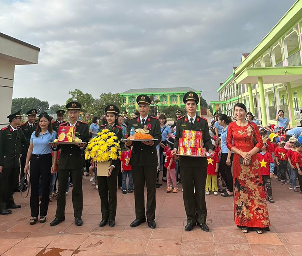 Tiếp đó, học viên Học viện đã phối hợp với cán bộ, giáo viên của Trường mầm non xã Tân Hương đưa các em học sinh đến dâng hương tại Đình Cả và chuẩn bị các hoạt động cho lễ hội truyền thống diễn ra trong thời gian tới.