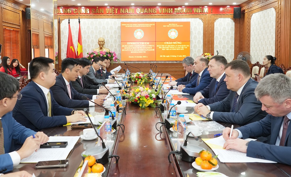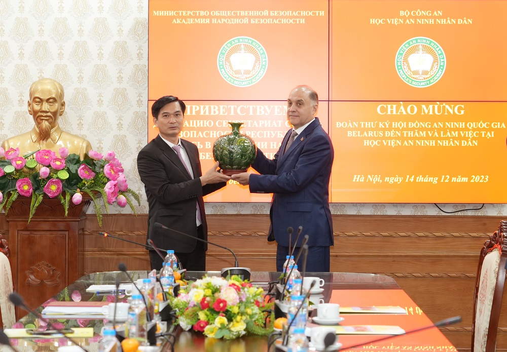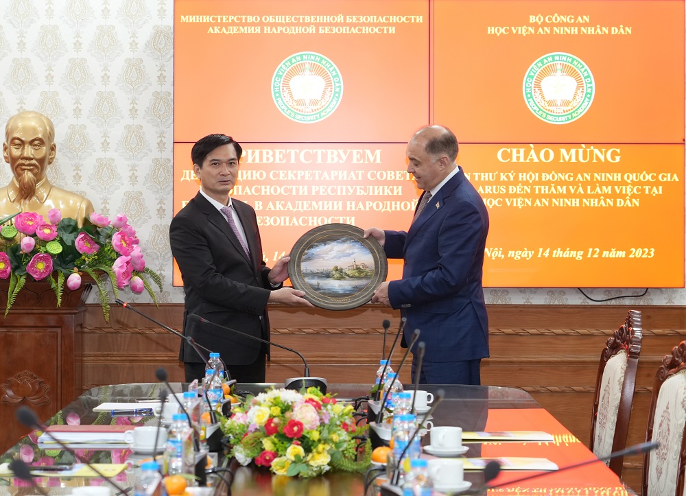 Nhân dịp chuyến thăm Việt Nam lần này, ngày 14/12/2023, Đoàn Thư ký Hội đồng An ninh quốc gia Belarus do đồng chí Volfovich Aleksandr Grigorievich - Thư ký Hội đồng An ninh Quốc gia Cộng hòa Belarus làm Trưởng đoàn, đã tới thăm và làm việc tại Học viện An ninh nhân dân.