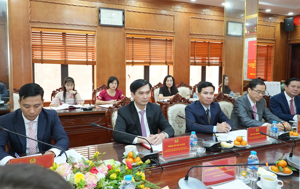Thiếu tướng, PGS.TS Trịnh Ngọc Quyên - Giám đốc Học viện chủ trì buổi làm việc. Tham gia tiếp Đoàn công tác của Belarus có Đại tá Nguyễn Hoa Chi - Phó Cục trưởng Cục Đối ngoại, Bộ Công an; đại diện lãnh đạo các đơn vị thuộc Cục Đối ngoại và Học viện ANND .