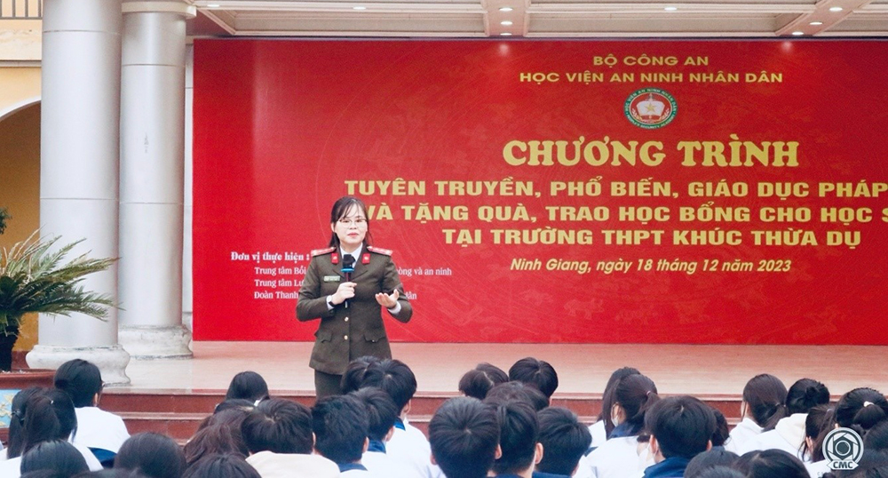 Hoạt động tuyên truyền, phố biến pháp luật cho học sinh tại Trường THPT Khúc Thừa Dụ.