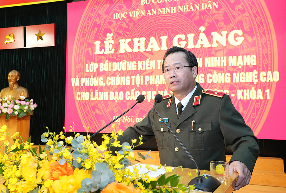 Phát biểu tại buổi Lễ, đồng chí Giám đốc Học viện đề nghị các học viên tích cực, chủ động trong học tập; chấp hành nghiêm kỷ luật lớp học và điều lệnh Công an nhân dân; đồng thời yêu cầu Ban tổ chức lớp học chủ động phối hợp, tổ chức tốt công tác quản lý lớp học, đảm bảo nghiêm túc theo đúng chương trình, kế hoạch. Đồng chí Giám đốc Học viện tin tưởng rằng, với sự quan tâm, chỉ đạo sát sao của lãnh đạo Bộ Công an, lãnh đạo Bộ Thông tin và Truyền thông; sự phối hợp, giúp đỡ của các cơ quan chức năng trong và ngoài Ngành Công an; với tinh thần, trách nhiệm, kinh nghiệm tổ chức của Học viện ANND và ý thức học tập nghiêm túc, cầu thị của các học viên, lớp bồi dưỡng sẽ thành công tốt đẹp và đạt được kết quả cao.