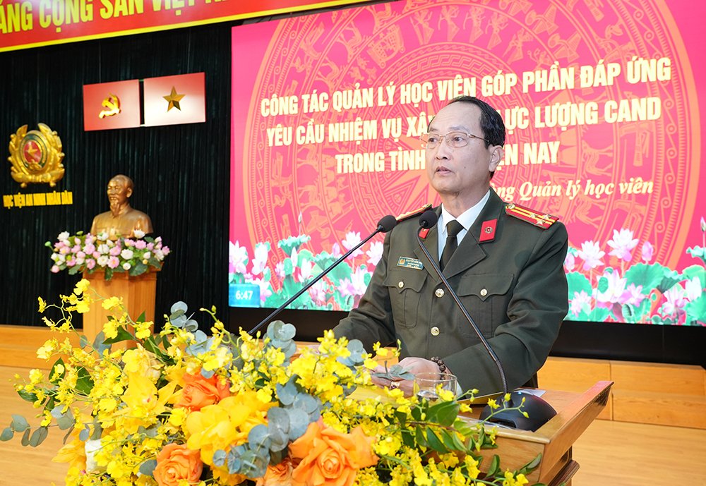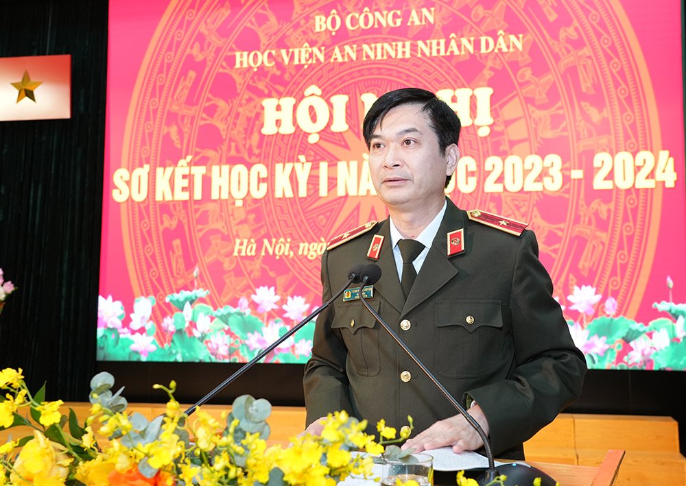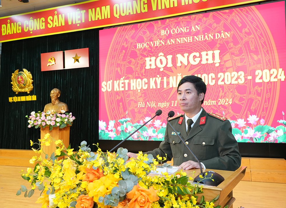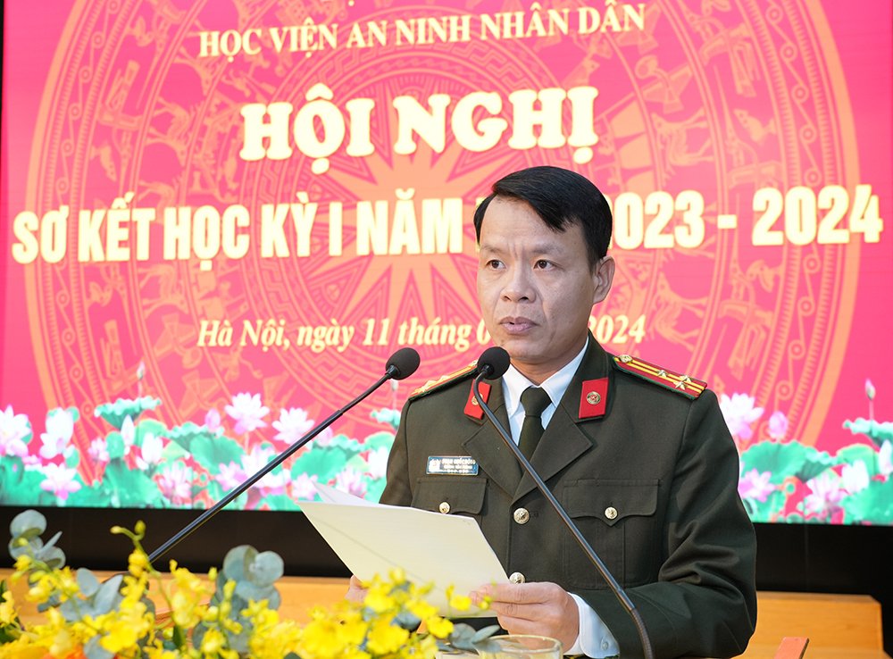 Tại Hội nghị, được sự uỷ quyền của Giám đốc Học viện, Thượng tá, PGS.TS Phạm Quốc Dũng - Chánh Văn phòng Học viện đã trình bày tóm tắt Báo cáo sơ kết công tác học kỳ I và phương hướng công tác học kỳ II năm học 2023 - 2024.
