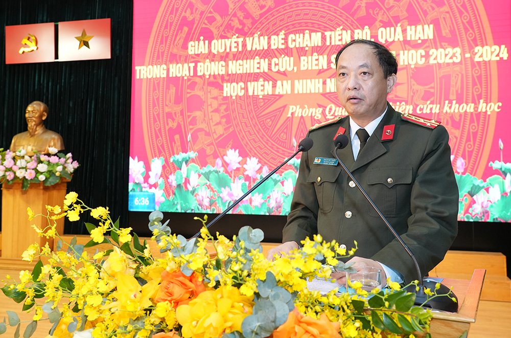 Phát biểu chỉ đạo tại Hội nghị, Thiếu tướng, PGS.TS Trịnh Ngọc Quyên - Bí thư Đảng ủy, Giám đốc Học viện phổ biến, quán triệt nội dung của Hội nghị Công an toàn quốc lần thứ 79 với kết quả đạt được, những hạn chế bất cập, nguyên nhân của công tác công an năm 2023; phương hướng công công tác công an năm 2024 và những giải pháp hiệu quả nhằm hoàn thành thắng lợi các mục tiêu, yêu cầu, nhiệm vụ của năm 2024; kết luận của Đại tướng Tô Lâm, Ủy viên Bộ Chính trị, Bí thư Đảng ủy Công an Trung ương, Bộ trưởng Bộ Công an về nhiệm vụ các mặt công tác công an; chỉ đạo của các đồng chí lãnh đạo Đảng, Nhà nước, lãnh đạo Bộ Công an về công tác công an năm 2024.