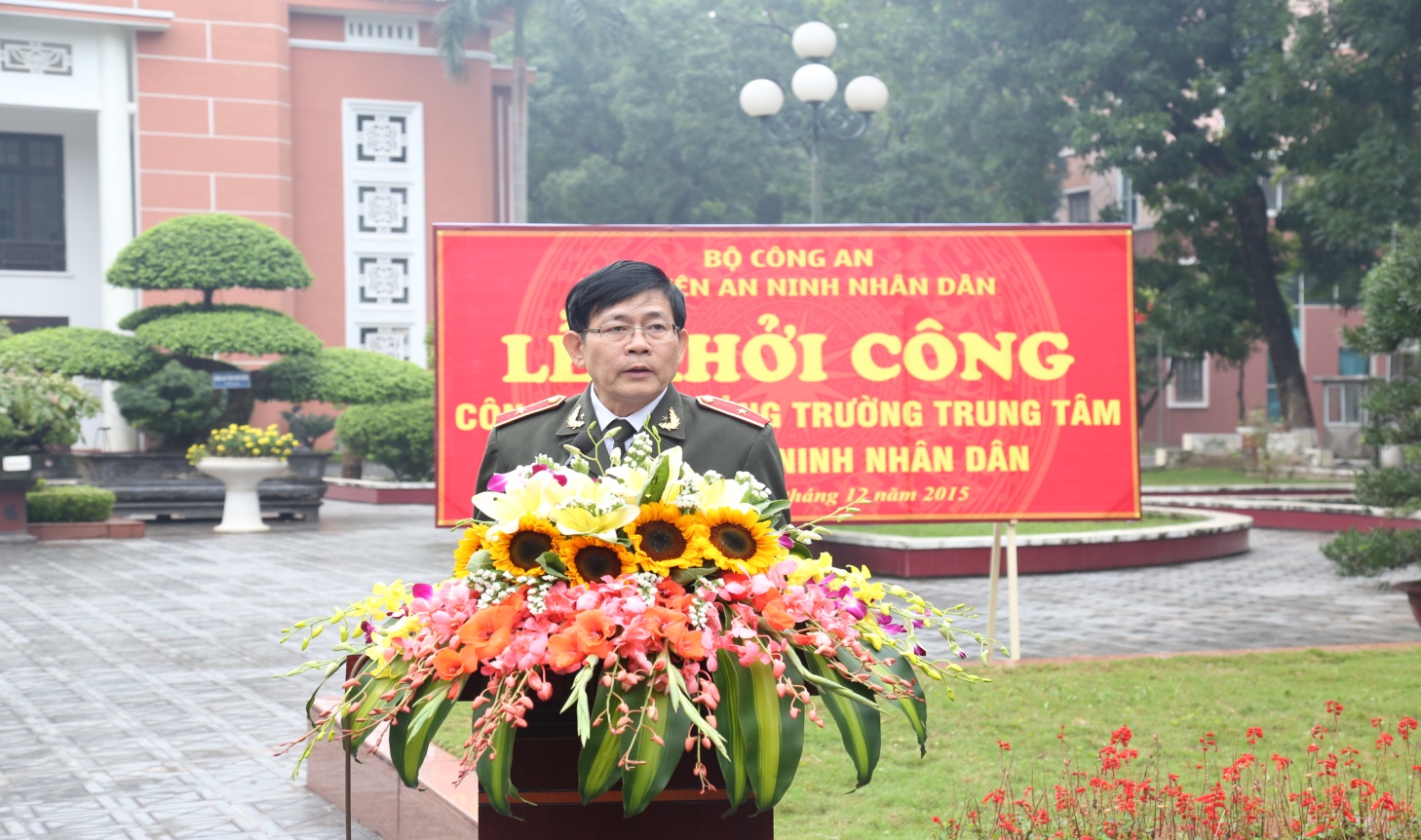 (Đồng chí Thiếu tướng Nguyễn Văn Ngọc, Giám đốc Học viện phát biểu tại Lễ khởi công)