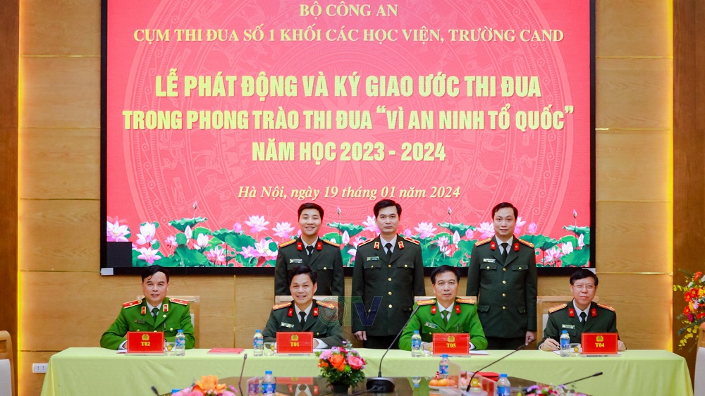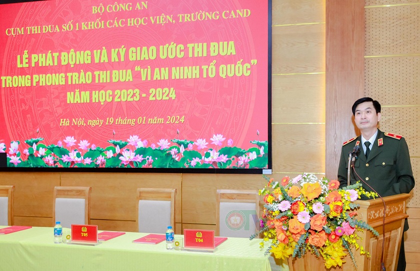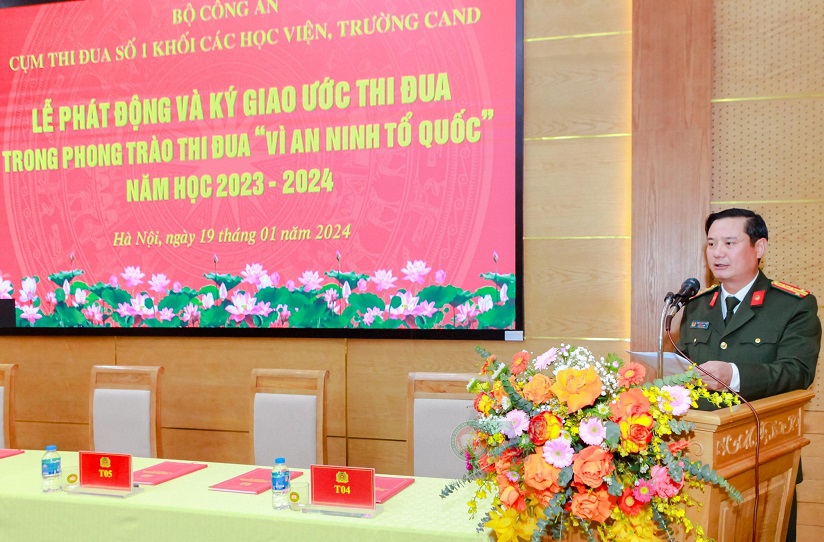Chiều 19/01/2024, tại Học viện An ninh nhân dân (ANND), Cụm thi đua số 1 khối các học viện, trường CAND đã tổ chức Lễ phát động và ký giao ước thi đua phong trào thi đua “Vì An ninh Tổ quốc” năm học 2023 - 2024. Thiếu tướng, PGS.TS Trịnh Ngọc Quyên - Bí thư Đảng ủy, Giám đốc Học viện ANND, đơn vị Cụm trưởng Cụm thi đua số 1 khối các học viện, trường CAND chủ trì buổi Lễ.