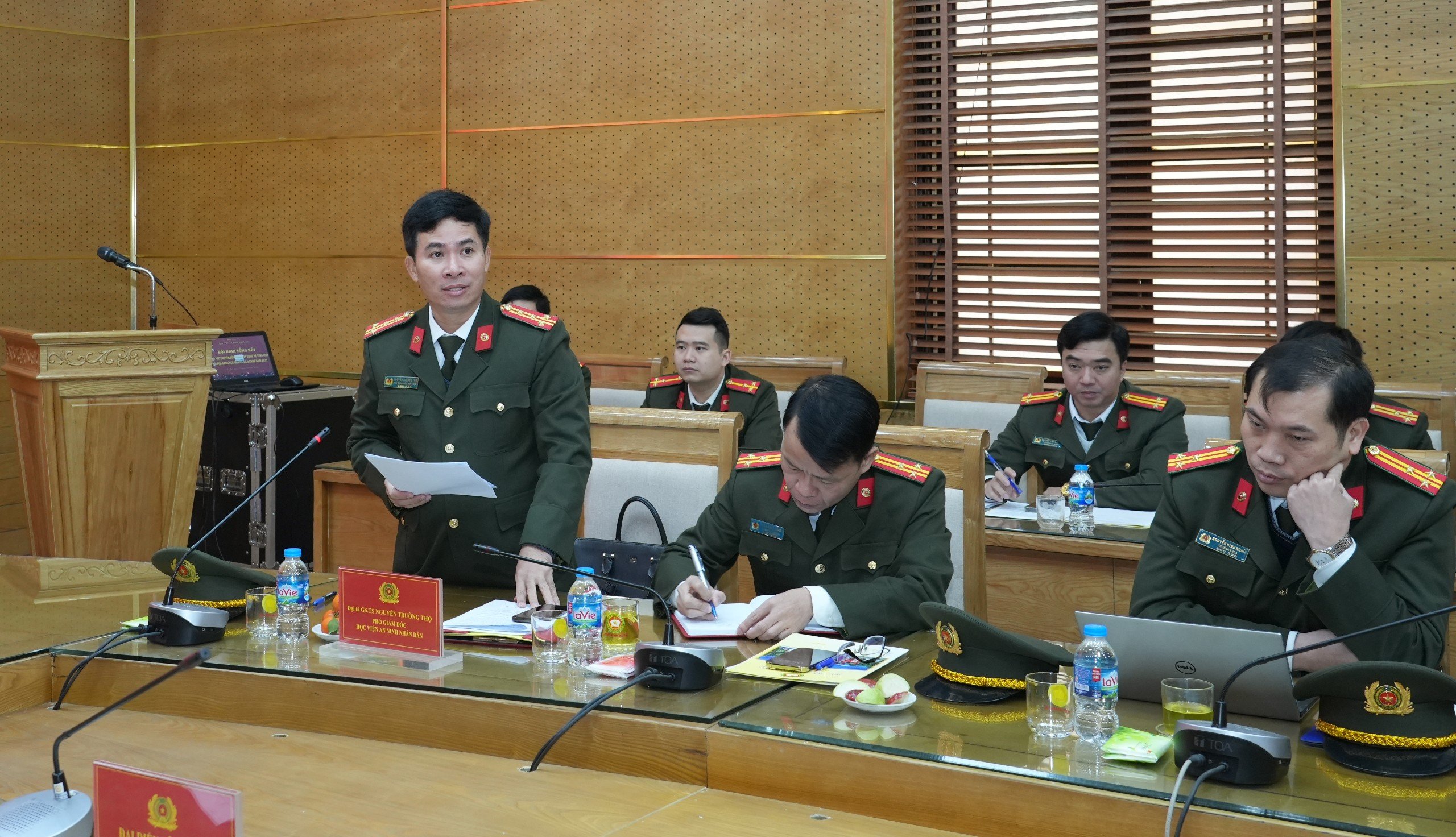 Trình bày tổng kết công tác chuyển đổi số và xây dựng hệ sinh thái đổi mới sáng tạo tại Học viện ANND 2023, Thượng tá, PGS.TS Phạm Quốc Dũng - Chánh Văn phòng khẳng định, công tác chuyển đổi số tại Học viện đã đạt được những kết quả tích cực và đảm bảo được yêu cầu đề ra. Cụ thể: tiến độ thực hiện theo kế hoạch cơ bản đảm bảo, trong đó một số vấn đề căn bản, cốt lõi phục vụ chuyển đổi số đã được tập trung giải quyết. Các dữ liệu đã được tích cực số hóa, bổ sung; xây dựng được thêm các ứng dụng và kho dữ liệu mới; mở rộng đối tượng tiếp cận với các dịch vụ và dữ liệu số. Hạ tầng công nghệ thông tin của Học viện đã từng bước hiện đại hóa trong đó tập trung vào trung tâm dữ liệu và hệ thống mạng lõi. Nhiều ứng dụng, dịch vụ mới được triển khai thử nghiệm và sử dụng chính thức. Học viện đã tích cực ứng dụng các công nghệ dạy học trực tuyến vào việc tổ chức tập huấn chuyển đổi số, công nghệ thông tin cho cán bộ, giảng viên. Tăng cường phối hợp, học tập, chia sẻ kinh nghiệm chuyển đổi số với các đơn vị trong và ngoài ngành Công an.