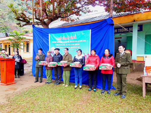 Dưới cơn mưa phùn, trên mặt sân trường bùn đất, từng món quà được các thành viên trong đoàn trao tận tay cho các em nhỏ, các gia đình chính sách và gia đình có hoàn cảnh đặc biệt khó khăn trên địa bàn như thêm thể hiện rõ sự gần gũi, gắn bó của tình quân dân.