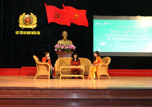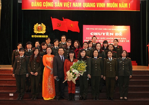 Nhằm trang bị kiến thức về sức khỏe sinh sản, thực hiện kế hoạch hóa gia đình, chăm sóc sắc đẹp và nội tiết tố của phụ nữ, chia sẻ và giải đáp thắc mắc về những vấn đề liên quan tới sức khỏe sinh sản, ngày 30/12/2015, tại Hội trường lớn Học viện ANND, Hội Phụ nữ Học viện ANND tổ chức buổi sinh hoạt chuyên đề “Chăm sóc sức khỏe sinh sản, chăm sóc sắc đẹp và nội tiết tố của Phụ nữ” do Bác sỹ Hồ Mai Hoa, Trung tâm chăm sóc sức khỏe phụ nữ - Thành phố Hà Nội phối hợp cùng Công ty TNHH Dược phẩm Ích Nhân báo cáo chuyên đề cho toàn hội viên.