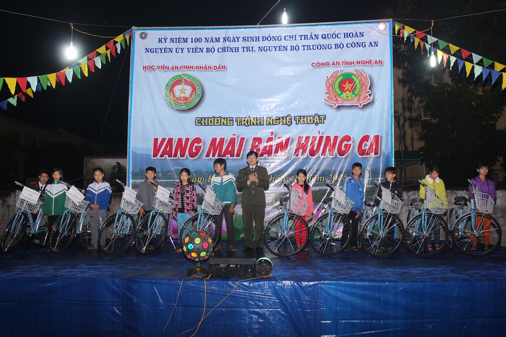 Thiếu tướng, GS.TS Nguyễn Văn Ngọc, Giám đốc Học viện ANND tặng xe đạp cho 10 học sinh nghèo vượt khó