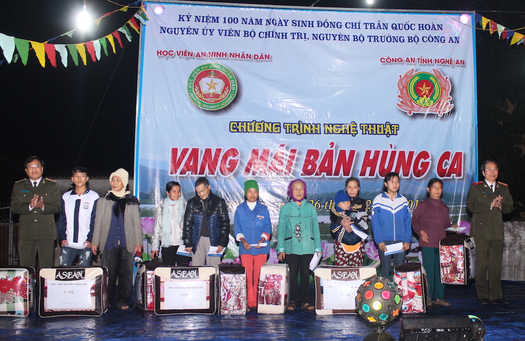 Nhân chương trình, Học viện ANND đã tiến hành một số hoạt động xã hội tình nghĩa, đó là tặng quà cho 10 hộ gia đình khó khăn trên địa bàn, tặng xe đạp cho 10 học sinh nghèo vượt khó của xã và tặng ti vi cho Ban Công an xã Nam Trung. Xen lẫn là các tiết mục biểu diễn nghệ thuật đặc sắc của cán bộ, học viên Học viện ANND, Công an tỉnh Nghệ An, Huyện Đoàn Nam Đàn và Đoàn xã Nam Trung. Nhiều màn hát múa ca ngợi Đảng, Bác Hồ, tình yêu quê hương đất nước và tình cảm quân dân thắm thiết, thể hiện niềm vinh dự, tự hào của đoàn viên thanh niên Công an được biểu diễn trên quê của Người, phục vụ bà con; nâng cao hình ảnh đẹp người chiến sỹ CAND.