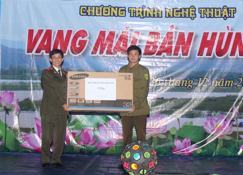 Thiếu tướng, PGS.TS Nguyễn Hồng Hải, Phó Giám đốc Học viện ANND tặng ti vi cho đại diện Ban Công an xã Nam Trung