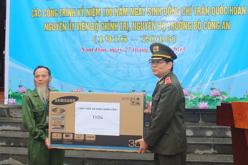 Thiết thực hưởng ứng và tổ chức các hoạt động chào mừng kỷ niệm 100 năm Ngày sinh Bộ trưởng Trần Quốc Hoàn, trong hai ngày 26 và 27/12, Công an tỉnh Nghệ An đã tiến hành khám bệnh và cấp phát thuốc miễn phí cho 600 lượt bà con nhân dân trên địa bàn xã Nam Trung, với tổng số tiền trị giá 80 triệu đồng; tặng 5 suất quà (trị giá 13 triệu đồng) cho thân nhân đồng chí cố Bộ trưởng…