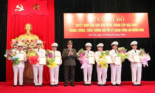 Chiều 9-1-2016, tại Hà Nội, Đảng ủy Công an Trung ương (CATW), lãnh đạo Bộ Công an trang trọng tổ chức Lễ công bố quyết định của Chủ tịch nước về việc thăng cấp bậc hàm cấp Tướng đối với sĩ quan Công an nhân dân (CAND). Đại tướng Trần Đại Quang, Ủy viên Bộ Chính trị, Bộ trưởng Bộ Công an chủ trì buổi Lễ.