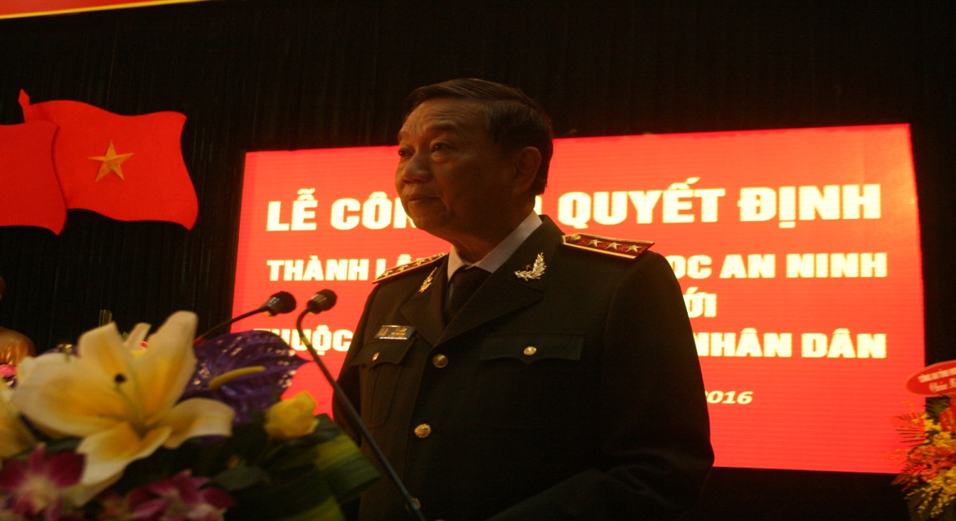 Phát biểu tại buổi Lễ, đồng chí Thứ trưởng Tô Lâm gửi lời chúc mừng tới Học viện An ninh nhân dân nói chung và Viện Khoa học An ninh nói riêng. Đồng chí nhấn mạnh: Việc thành lập Viện Khoa học An ninh thuộc Học viện An ninh nhân dân là mô hình mới, lần đầu tiên được xây dựng trong Công an nhân dân, một đơn vị cấp Cục trực thuộc một cơ sở đào tạo của Ngành, là Viện trong Học viện nên trong quá trình triển khai thực hiện chắc chắn sẽ không tránh khỏi những khó khăn, bỡ ngỡ. Do đó đòi hỏi các đơn vị mới cần đề ra những kế hoạch và chương trình hoạt động cụ thể, phù hợp với điều kiện và tình hình thực tiễn; cần đặc biệt chú trọng đến công tác nhân sự, tạo môi trường làm việc tích cực, chủ động nhằm đảm bảo chất lượng, hiệu quả công tác. Học viện An ninh nhân dân cần xây dựng và tạo cơ chế thuận lợi để Viện Khoa học An ninh và các đơn vị mới triển khai ngay, có hiệu quả các hoạt động theo chức năng, nhiệm vụ được giao.