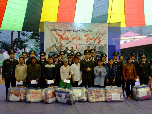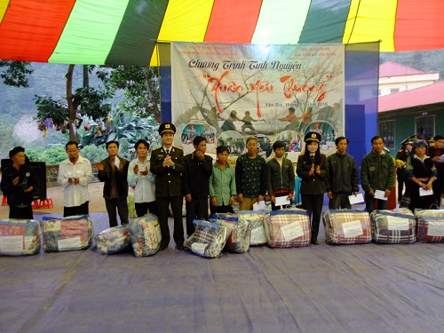 Trong Chương trình “Xuân yêu thương 2016”, Đoàn đến thăm và làm việc với Công an tỉnh Yên Bái. Với nghĩa tình đồng đội, chia sẻ giúp nhau vượt qua khó khăn, Đoàn đã tặng 2 suất quà cho cán bộ, đoàn viên Công an tỉnh Yên Bái có hoàn cảnh khó khăn. Món quà tuy nhỏ nhưng mang ý nghĩa lớn đã góp phần động viên tinh thần cho cán bộ chiến sĩ công an đang công tác tại vùng sâu, vùng xa, nơi biên giới có thêm điều kiện vươn lên trong cuộc sống, hoàn thành tốt nhiệm vụ chính trị.