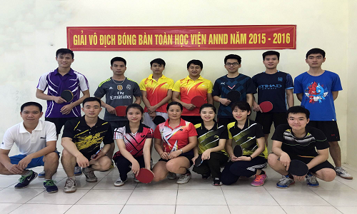 Thực hiện Kế hoạch số 1043/KH-T31-CTCT ngày 15/3/2016 của Giám đốc Học viện về việc tổ chức giải Bóng bàn nam nữ toàn Học viện năm học 2015-2016. Trên cơ sở bốc thăm chia bảng, ngày 22/3/2016, Học viện tổ chức Lễ khai mạc giải Bóng bàn. Đây là một trong nhưng hoạt động chào mừng 70 năm ngày thành lập Học viện ANND. Với 4 nội dung thi đấu là Đơn nam, Đơn nữ, Đồng đội nam, Đôi nam nữ, giải đã quy tụ nhiều vận động viên là cán bộ, giáo viên và học viên tham gia, trong đó, nhiều vận động viên đã đạt giải ở cấp Tỉnh, Tổng cục. Dự kiến, giải sẽ diễn ra trong 5 ngày.