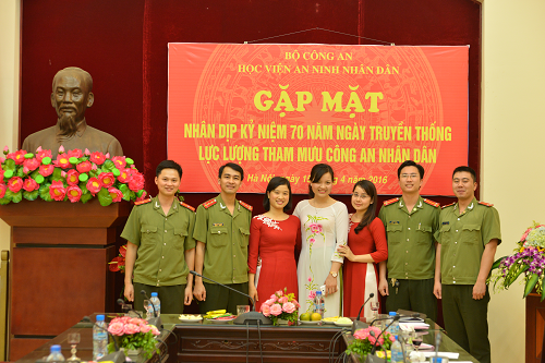 Ngày 15/4/2016, Học viện An ninh nhân dân đã tổ chức buổi Gặp mặt truyền thống nhân dịp kỷ niệm 70 năm Ngày truyền thống lực lượng Tham mưu Công an nhân dân (18/4/1946 – 18/4/2016). Tham dự buổi gặp mặt có các đồng chí trong Đảng ủy, Ban Giám đốc Học viện, đại diện lãnh đạo các Khoa, Phòng, Bộ môn, Trung tâm, Tạp chí thuộc Học viện, các đồng chí nguyên là lãnh đạo, cán bộ, chiến sĩ phòng Hành chính tổng hợp (nay là Văn phòng Học viện ANND) qua các thời kỳ, các đồng chí lãnh đạo cùng toàn thể cán bộ, chiến sĩ Văn phòng Học viện ANND.