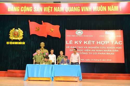 Chiều 14-6, tại Hà Nội, Học viện ANND và Công ty an ninh mạng Bkav đã ký thỏa thuận hợp tác trong đào tạo, bồi dưỡng và phối hợp nghiên cứu khoa học nhằm phát triển nguồn nhân lực chất lượng cao.