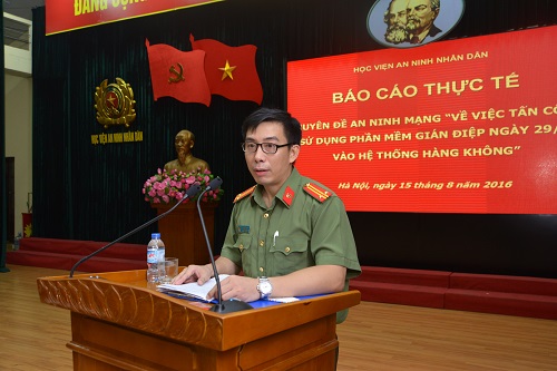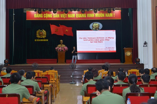 Sự kiện trên là một minh chứng cho quan điểm: không gian mạng đã trở thành một chiến sự thứ năm, và chiến tranh mạng đã trở thành một hình thái chiến tranh mới. Chính vì vậy, để giúp cán bộ giáo viên và sinh chuyên ngành Công nghệ thông tin và An ninh thông tin trong Học viện cập nhật thông tin mới tình an ninh mạng, Học viện An ninh nhân dân đã mời các chuyên gia từ BKAV tổ chức buổi báo cáo thực tế với chủ đề: “Cuộc tấn công của tin tặc sử dụng phần mềm gián điệp vào hệ thống của hãng hàng không VietNam Airline”.